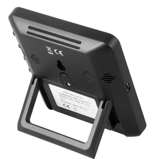 - The moisture meter PCE-HT 112 is compact, very small and equipped with a display. The moisture meter PCE-HT 112 records the temperature and humidity inside with its integrated sensor and simultaneously displays it via the LCD display. The moisture meter PCE-HT 112 can store up to 25,920 measured values, which can be evaluated with the aid of the software. - To establish a connection to a PC, the moisture meter has a USB interface. The software can also set alarms for high or low temperatures. It is also possible to switch over to the optionally available external sensor via the software.
