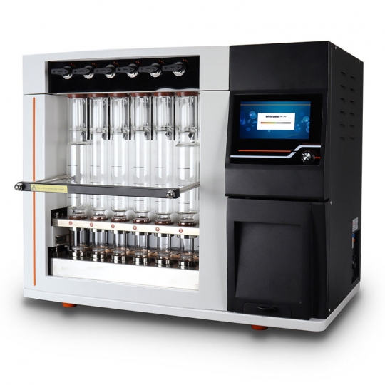 Kjeldahl Distillation Unit k9840 Model: K9840 Manufacturer: Jinan Hanon Instruments Origin: China Hanon K9840 Auto Kjeldahl Distillation Unit is designed to determine the nitrogen content of samples based on the Kjeldahl nitrogen determination method. Fully intelligent software is able to complete sample distillation within minutes, boasts automatic regent quantification and filling, automatic test. The distillation and condensation automatic cleaning system further enhances measurement precision; explicit interface is easy for operation. It is widely used in food processing, feed production, tobacco, livestock, soil fertility, environmental monitoring, medicine, agriculture, scientific research, teaching, quality control and other fields for the test of nitrogen or protein content, can also be used for the test of ammonium, volatile fatty acid/ alkali, and so on.